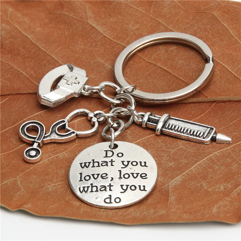 On sale 1pc Nurse Keychain Physician Assistant Key Chains Medical Keyring Stethoscope Syringe Charms Do Wha